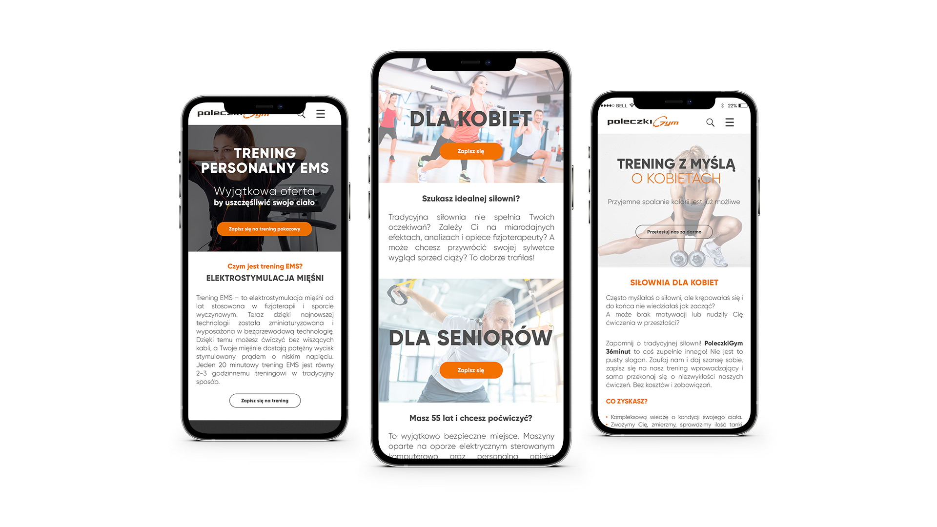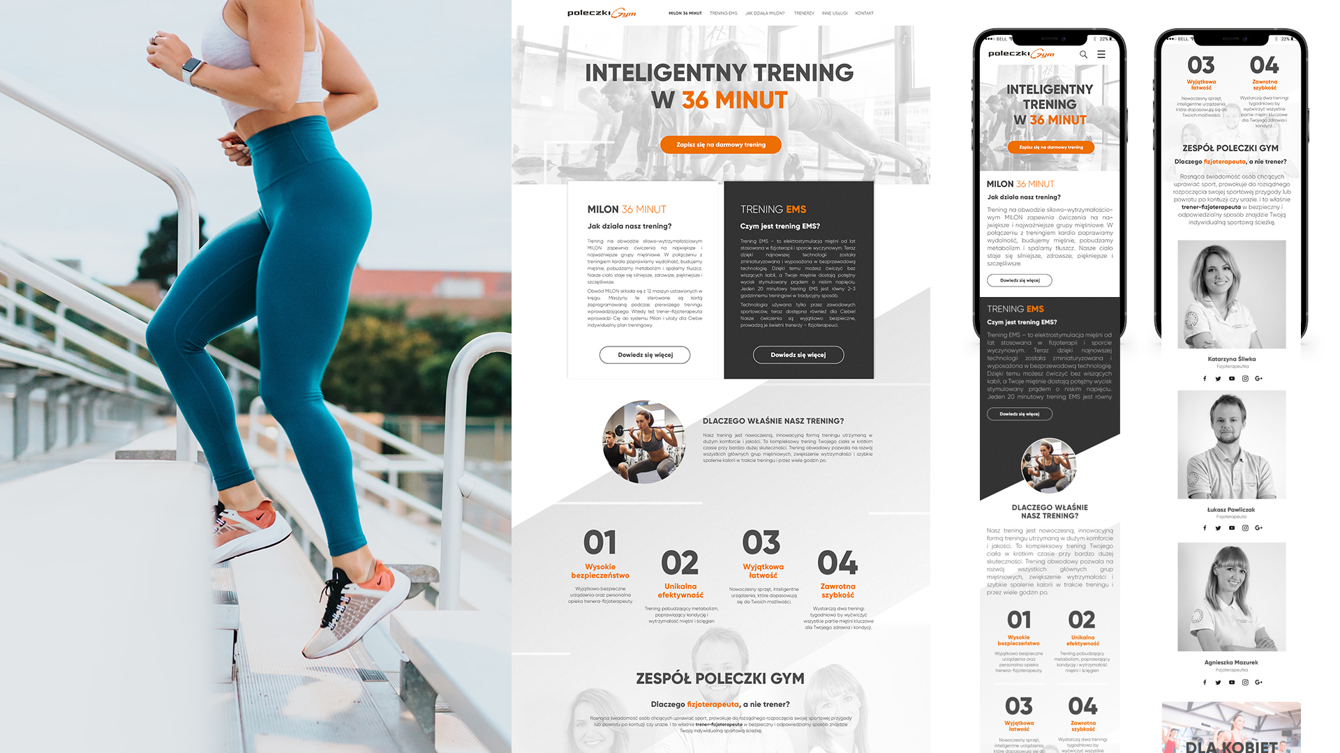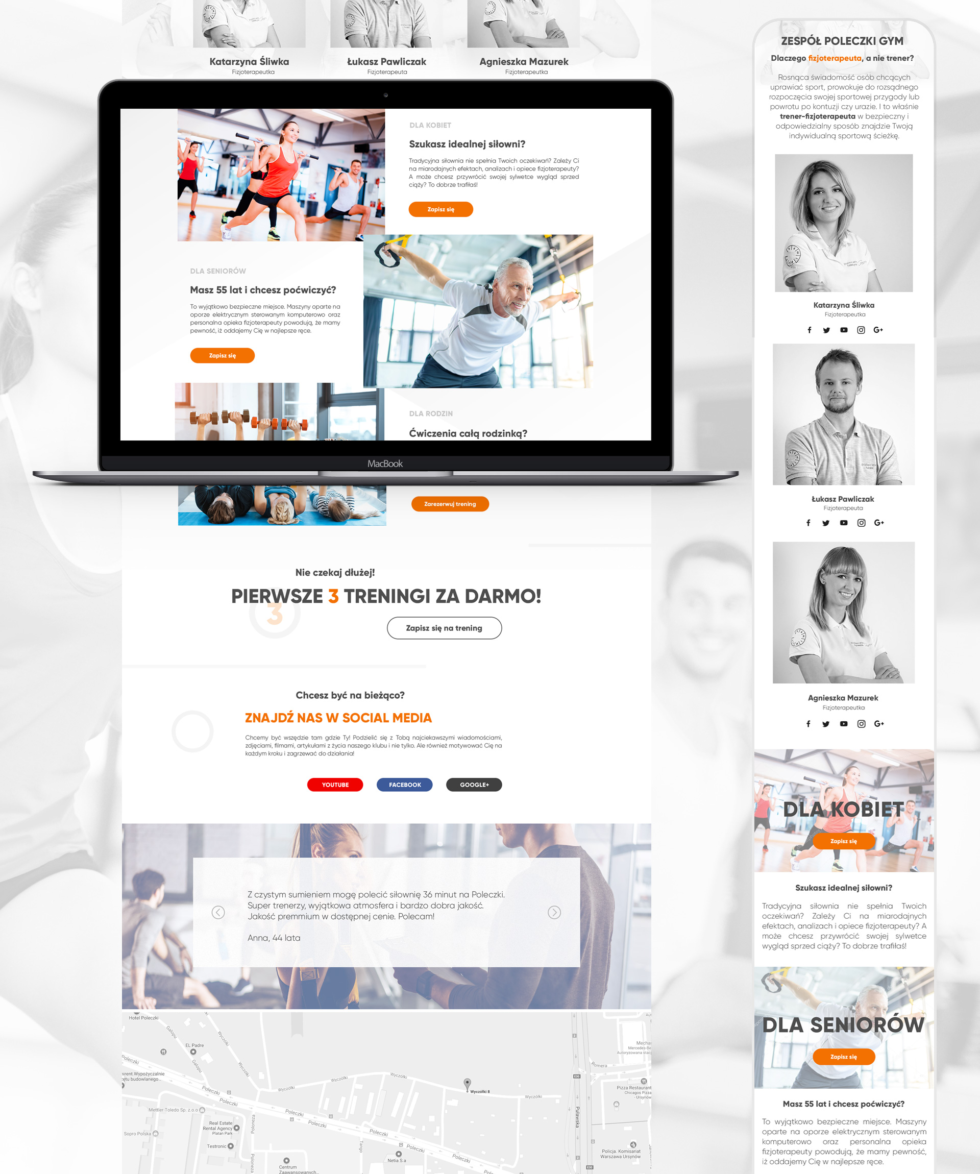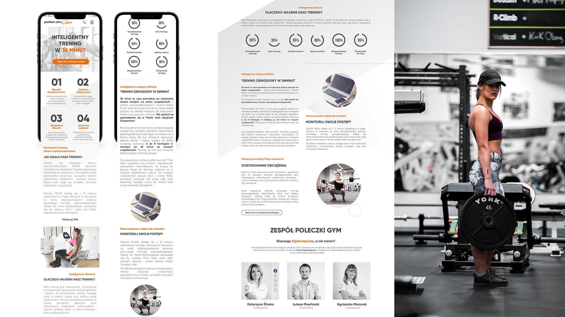 Projekt strony internetowej dostosowanej do urządzeń mobilnych. Klientowi zależało na połączeniu wielu elementów: niebanalny design, funkcjonalność strony, przekazanie informacji na temat aktywności fizycznej i przede wszystkim zachęcenie wszystkich osób do ruszenia się sprzed telewizora i kanapy. W związku z powyższym strona zawiera szereg informacji w formie infografik o możliwościach treningowych, ukierunkowane do wybranych przez klienta grup docelowych, zaprojektowanych w nowoczesnym stylu. Jednym słowem połącznie interfejsu z usługą i zachęceniem do działania.
